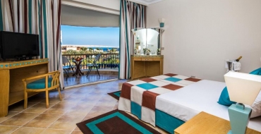 Superior Pool View numurs: numura platība 35-40 kv.m, ar logiem uz baseina pusi, vanna vai duša, tualete, fēns, balkons vai terase, gaisa kondicionētājs (centrālais, darbojas periodiski), tālrunis, tv, mini bārs, maksimāli var izmitināt – 3+1.