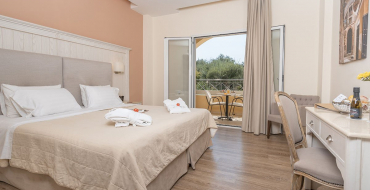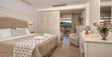 Junior Suite Garden View numurs: numura platība 25 kv.m, ar logiem uz dārza pusi, vanna vai duša, tualete, fēns, halāts, čības, balkons vai terase, gaisa kondicionētājs (individuālais), tālrunis, tv, ledusskapis, seifs (par papildus samaksu), wifi, tējkanna, maksimāli var izmitināt – 3,  ir numuri savienoti ar durvīm (ierobežots skaits, pēc pieprasījuma).