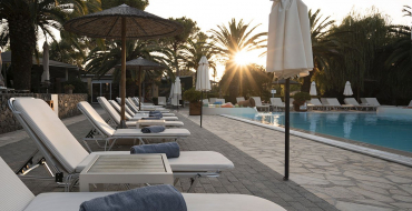 Ionian Beachfront Suite SV Private Pool (pludmales līnijā, skats uz jūru, guļamistaba ar viesistabas zonu, divvietīgā gulta, sofa, 2 vannasistabas (1 ar vannu un dušu, otra ar dušu), privāts baseins, privāta lapene pludmalē, maks. 3 cilv. + infants, 70 m2).