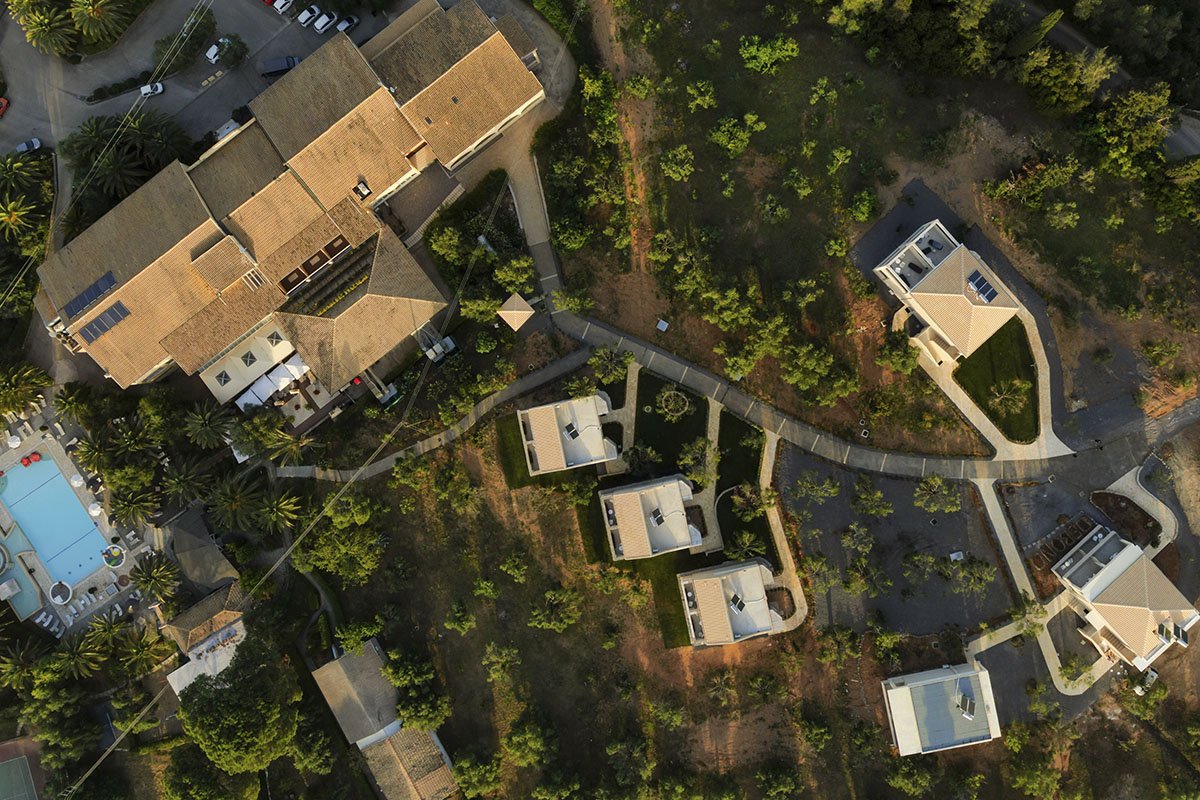Viesnīca uzcelta olīvkoku audzes (27 000 m2) vidū – salas ainaviskajā Korfiotas dienvidaustrumu piekrastē, pie klusās un kristāltīrās Messonghi pludmales. Viesnīcas arhitektūrai raksturīgs tradicionālo un moderno arhitektūras elementu apvienojums. Vairumam numuru ir privātais baseins.