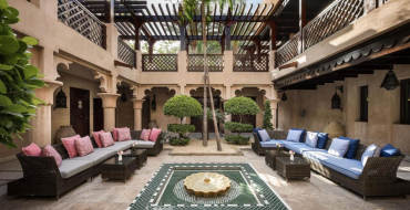 Отель: расположен в 8 км от международного аэропорта г. Дубай, в 30 км от центра г. Дубай, в туристической зоне Джумейра, на берегу Персидского залива. Построен в 1989 году, общая площадь территории составляет 35 000 м2, последняя реновация проведена в 2005 г. Состоит из комплекса 33-х двух этажных коттеджей, всего 195 номеров с видом на залив и на сад: 67 standard rooms (макс. 2 чел., 20 м2); 32 standard rooms with balcony (макс. 2 чел., 25 м2); 66 junior suites (спальня, гостиная, ванная комната с джакузи, гардеробная, межкомнатная дверь, макс. 3 чел или 2+2 чел., 44 м2); 29 executive suites (1 уровень - гостиная, 2 уровень - спальня, ванная комната с джакузи, макс. 3 чел. или 2+2 чел., 53 м2); royal suite (двух уровненый номер: гостинная с полностью оборудованной кухней, спальня, ванная комната с джакузи, макс. 2+2 чел., 136 м2). При заезде в отель взимается депозит.Пляж: собственный, песчанный. Протяженность пляжа – 200 м. Зонтики, шезлонги, матрасы, полотенца – бесплатно.