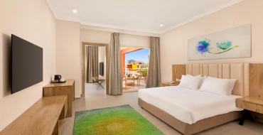 Standard Partly Sea View: площадь номера 45 кв.м, вид в сторону моря, ванна, туалет, фен, балкон или терраса, кондиционер (индивидуальный), телефон, телевизор, мини-бар (заполняется водой и безалкогольными напитками один раз за весь период проживания), сейф, беспроводной интернет, набор для чая/кофе, максимальное размещение – 3+1.